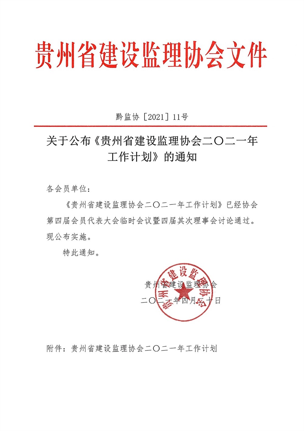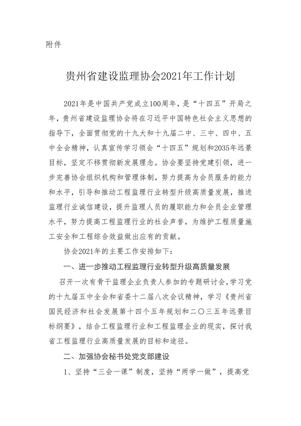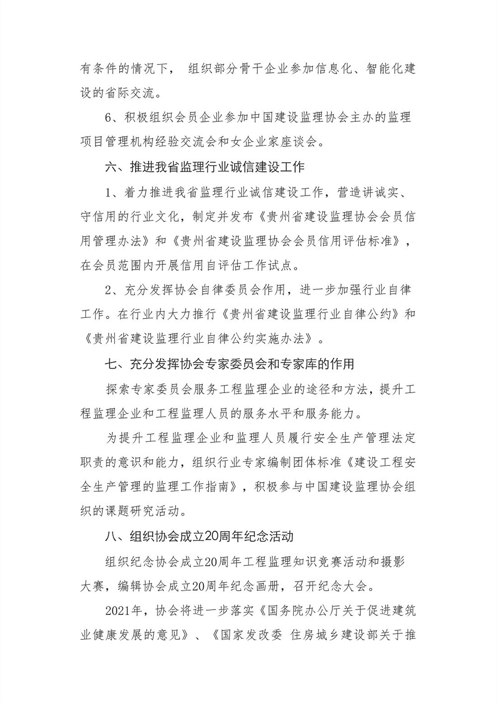 关于公布《贵州省建设监理协会二〇二一年工作计划》的通知